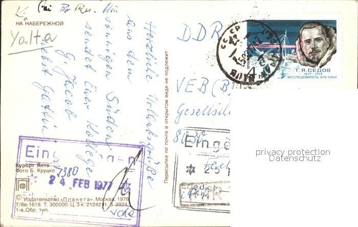 old postcard Jalta Yalta Krim Crimea Hafen Dampfer postalisch gelaufen Erhaltung siehe scans