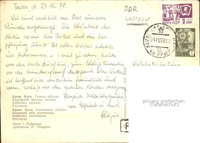 old postcard Jalta Yalta Krim Crimea Hotel Jalta postalisch gelaufen Erhaltung siehe scans [NatalD47 kv013box]