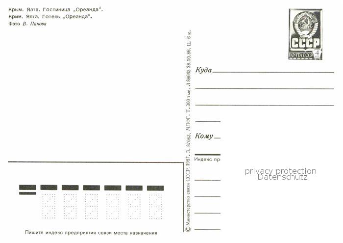 Jalta Yalta Krim Crimea Hotel Oreanda postalisch nicht gelaufen Ganzsache (eingedruckte Briefmarke) Erhaltung siehe scans [NatalD47]