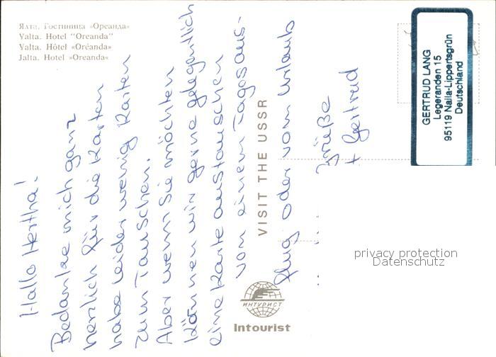 Jalta Yalta Krim Crimea Hotel Oreander postalisch nicht gelaufen Erhaltung siehe scans
