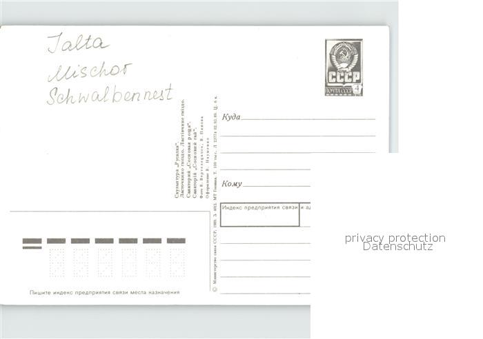 Jalta Yalta Krim Crimea Mischor Schwalbennest postalisch nicht gelaufen Erhaltung siehe scans
