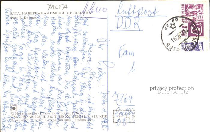old postcard Jalta Yalta Krim Crimea Promenade Hafen Passagierdampfer postalisch gelaufen Erhaltung siehe scans