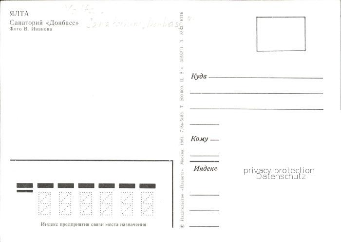 Jalta Yalta Krim Crimea Sanatorium Donbass postalisch nicht gelaufen Erhaltung siehe scans