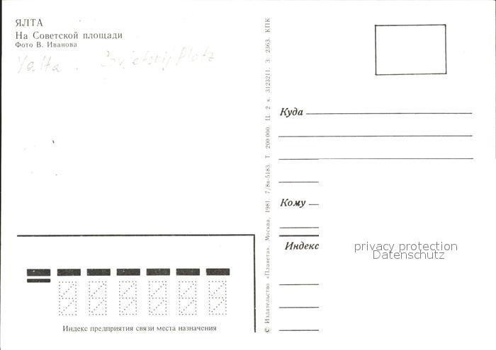 Jalta Yalta Krim Crimea Sovetskij Platz postalisch nicht gelaufen Erhaltung siehe scans