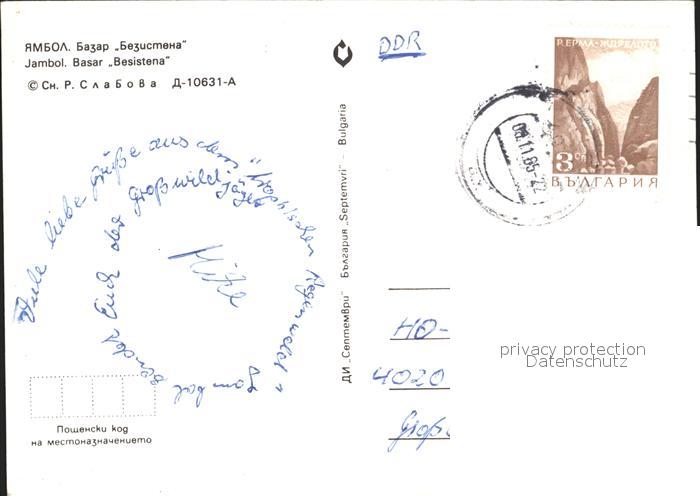 old postcard Jambol Basar Besistena postalisch gelaufen Erhaltung siehe scans