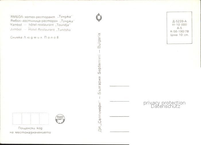 Jambol Hotel Restaurant Tundsha postalisch nicht gelaufen Erhaltung siehe scans