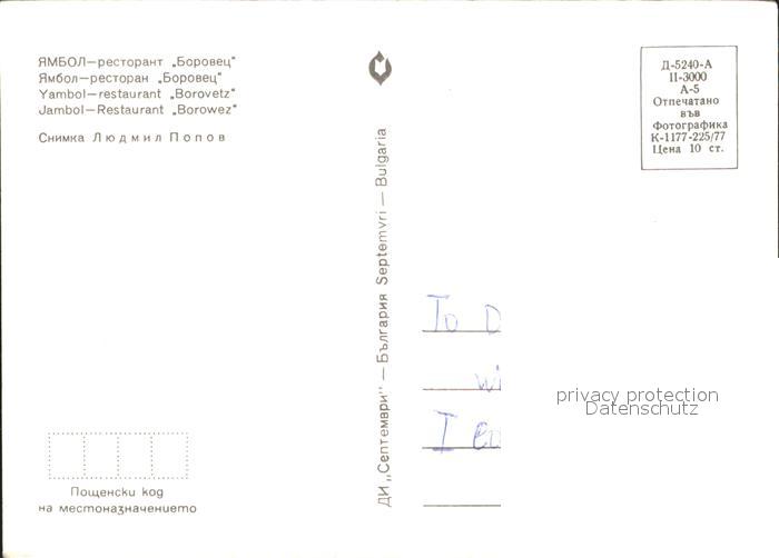 Jambol Restaurant Borowez postalisch nicht gelaufen Erhaltung siehe scans