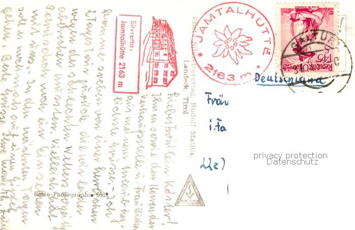 73256638 alte Postkarte Jamtalhuette Jamspitze-Dreilaenderspitze Silvretta postalisch gelaufen Erhaltung siehe scans [NatalD47] KatCode: 11390