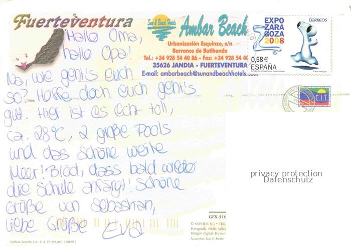 74005696 old postcard Jandia Fuerteventura Canarias ES Ambar Beach Pools Foyer postalisch gelaufen Erhaltung siehe scans [WerneD78] KatCode: 11510