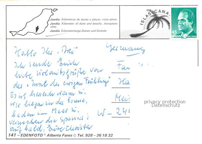 74096407 old postcard Jandia Fuerteventura Canarias ES Fliegeraufnahme postalisch gelaufen Erhaltung siehe scans [WerneD78] KatCode: 11510