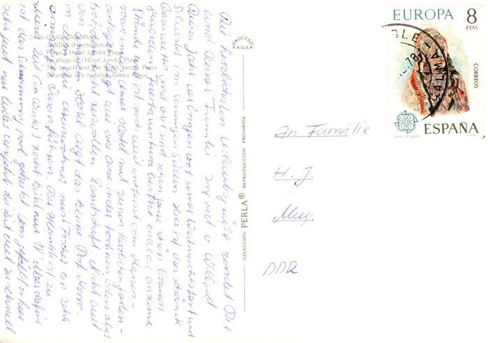 73904756 old postcard Jandia Fuerteventura Canarias ES Playa y Hotel Playa Jandia vista aérea postalisch gelaufen Fliegeraufnahme Erhaltung siehe scans [FriedD77] KatCode: 11510