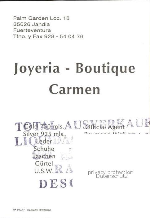 Jandia Joyeria Boutique Carmen Strand postalisch nicht gelaufen Werbekarte (keine Postkarte) Erhaltung siehe scans