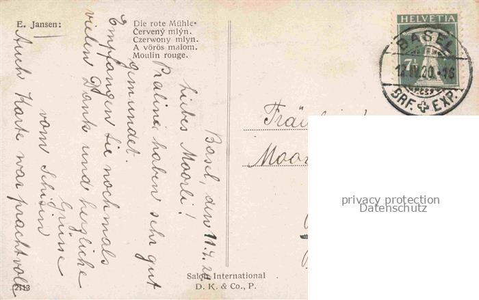 74075411 alte Postkarte JANSEN E. Kuenstlerkarte die Rote Muehle postalisch gelaufen Erhaltung siehe scans [SanaeD93] KatCode: 22240000003200