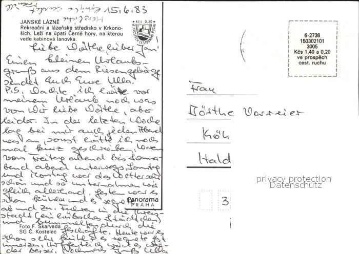old postcard Janske Lazne postalisch gelaufen Erhaltung siehe scans