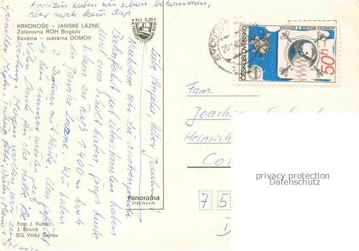 74137973 old postcard Janske Lazne Johannisbad CZ Panorama Kavarna Cukrarna Domov Gastraeume postalisch gelaufen Erhaltung siehe scans [FriedD77] KatCode: 11520