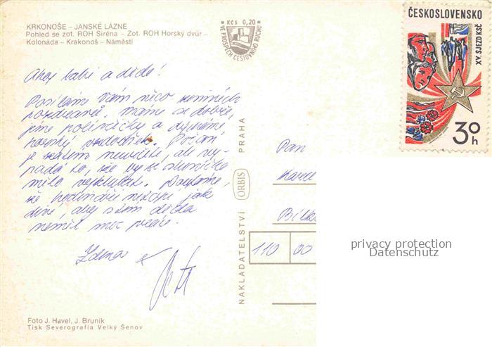 74153155 old postcard Janske Lazne Johannisbad Krkonose Koeniggraetz CZ Panorama Pohled se zot ROH Sirena Zot ROH Horsky dvuer Kolonada Krakonos Namesti postalisch gelaufen Erhaltung siehe scans [WerneD78] KatCode: 11520