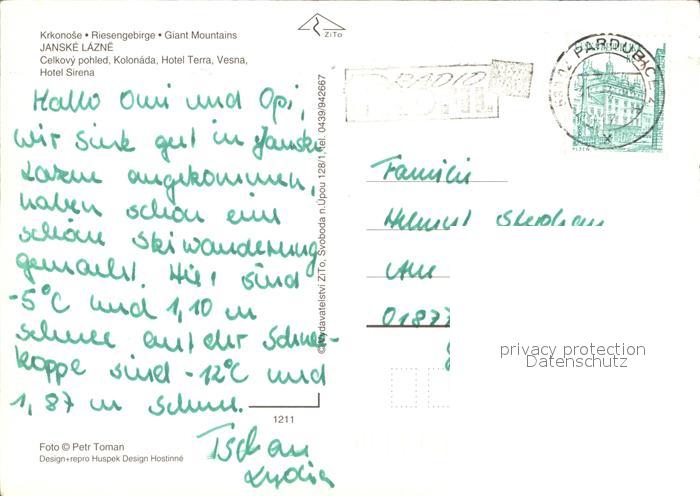 old postcard Janske Lazne Krkonose Hotel Sirena postalisch gelaufen Erhaltung siehe scans