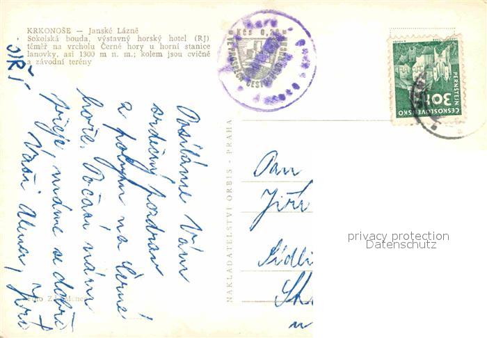 old postcard Janske Lazne Sokolska bouda Hotel Krkonose Riesengebirge Winterlandschaft postalisch gelaufen Erhaltung siehe scans [FriedD77]