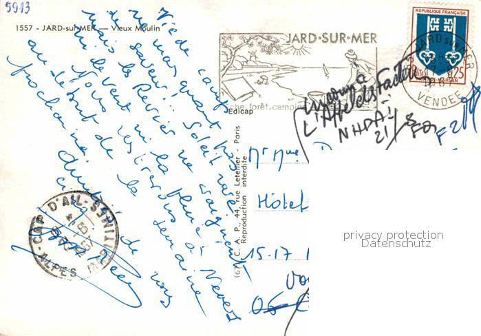12711660 carte postale Jard-sur-Mer Vieux Moulin Windmuehle postalisch gelaufen Erhaltung siehe scans [FriedD77] KatCode: 11170085385114