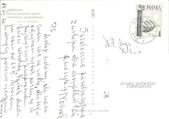 old postcard Jaroslaw Rathaus postalisch gelaufen Erhaltung siehe scans