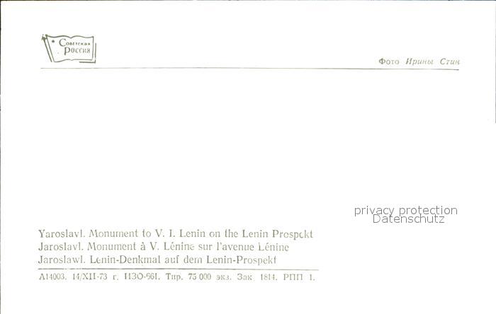 Jaroslawl Lenin-Denkmal postalisch nicht gelaufen Erhaltung siehe scans [NatalD47]
