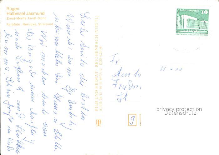 72382681 alte Postkarte Jasmund Ernst-Moritz-Arndt-Sicht postalisch gelaufen Erhaltung siehe scans KatCode: 11110013061004
