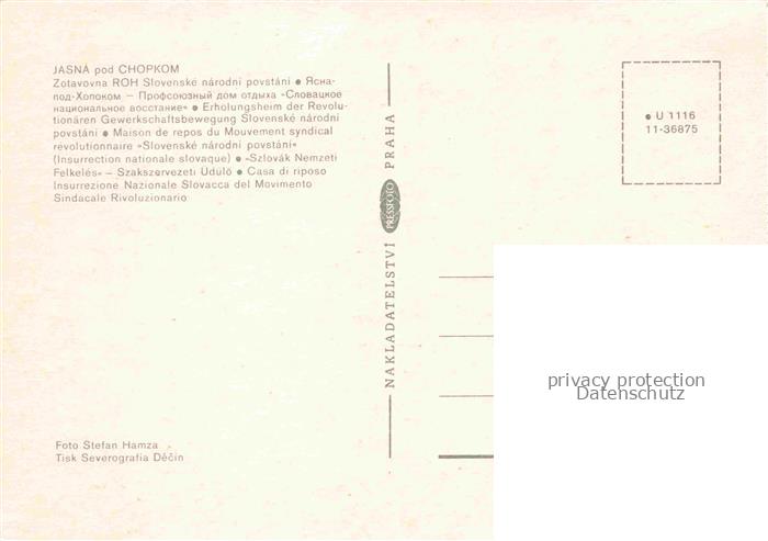 74040318 Jasna Nizke Tatry SK Snorkom Erholungsheim Gewerkschaftsbewegung postalisch nicht gelaufen Erhaltung siehe scans [IrynaD87] KatCode: 11490