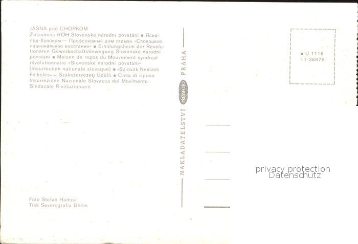 Jasna Slowakei Chopkom Zotavovna ROH postalisch nicht gelaufen Erhaltung siehe scans