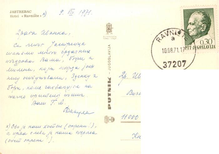 73905704 old postcard Jastrebac Nis Nisch Okrug Nisava Serbija Hotel Ravniste postalisch gelaufen Erhaltung siehe scans [WerneD78] KatCode: 11480