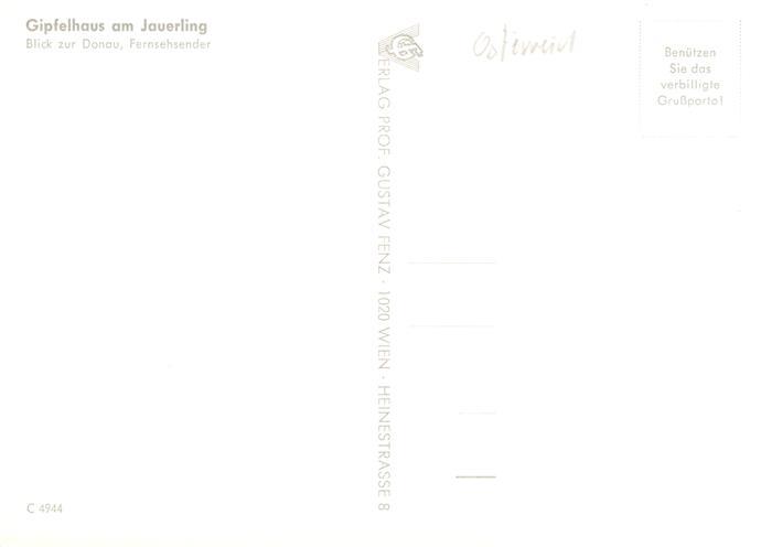 73937080 Jauerling Gipfelhaus Terrasse Fliegeraufnahme Donau Fernsehsender postalisch nicht gelaufen Erhaltung siehe scans [WerneD78] KatCode: 11390124031326