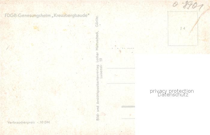 43354073 Jauernick-Buschbach FDGB Genesungsheim Kreuzbergbaude postalisch nicht gelaufen Erhaltung siehe scans [FriedD77] KatCode: 11110014263000