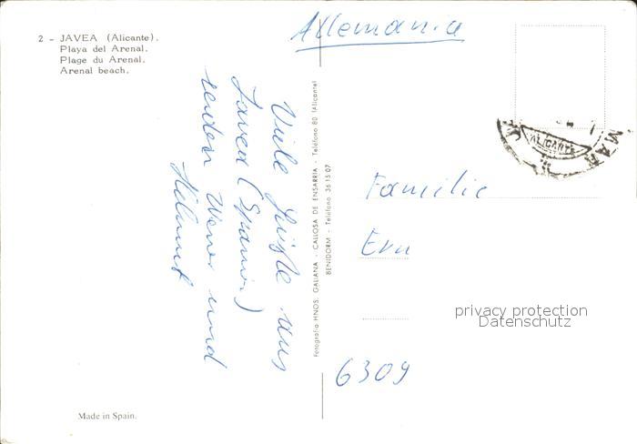 old postcard Javea Playa del Arenal Strand postalisch gelaufen Erhaltung siehe scans
