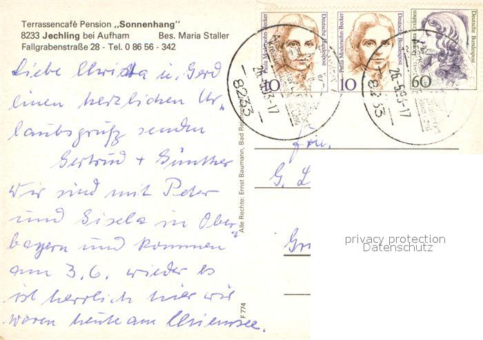 73648985 alte Postkarte Jechling Terrassen-Cafe Pension Sonnenhang Panorama Alpen postalisch gelaufen Erhaltung siehe scans [FriedD77] KatCode: 11110009172112