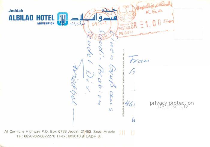 old postcard Jeddah Albilad Hotel postalisch gelaufen Erhaltung siehe scans [PaolaD17]