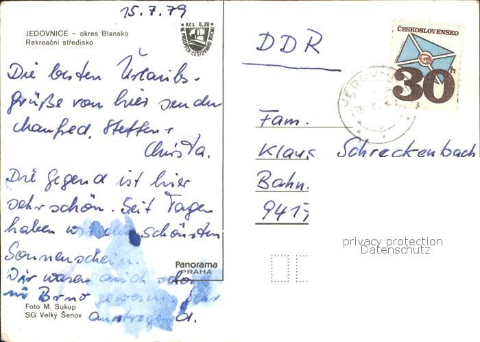 old postcard Jedovnice Campingplatz postalisch gelaufen Erhaltung siehe scans