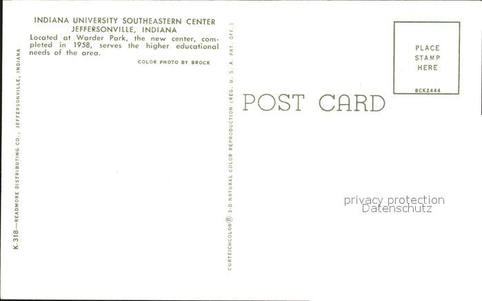 72486798 Jeffersonville Indiana Indiana University Southeastern Center postalisch nicht gelaufen Erhaltung siehe scans KatCode: 14140160000000