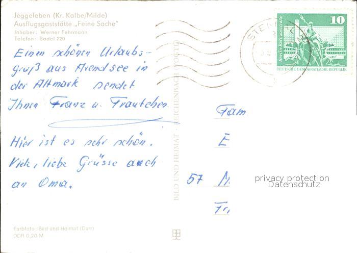 72568463 alte Postkarte Jeggeleben Gaststaette Feine Sache postalisch gelaufen Erhaltung siehe scans [KathaD79] KatCode: 11110015081210