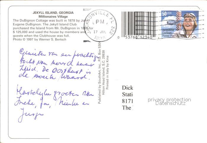 71939384 old postcard Jekyll Island Millionaires Village postalisch gelaufen Erhaltung siehe scans KatCode: 14140120000000