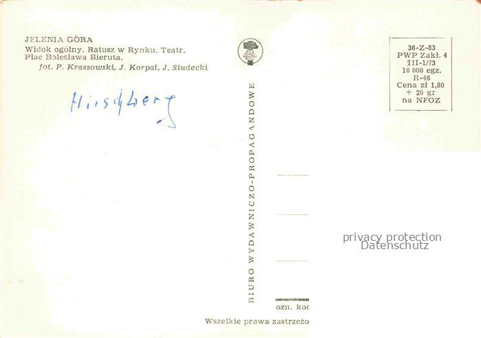 74044045 JELENIA GORA Hirschberg Schlesien PL Widok ogolny Ratusz w Rynku Teatr Plac Boleslawa Bieruta postalisch nicht gelaufen Erhaltung siehe scans [WerneD78] KatCode: 11410