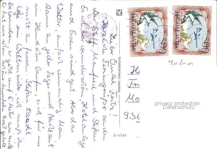 old postcard Jelsa Kroatien Dorfmotiv Hafen Teilansicht postalisch gelaufen Erhaltung siehe scans