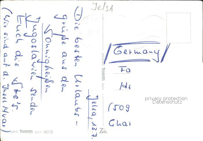 old postcard Jelsa Kroatien Nachtaufnahme Hafen Strand postalisch gelaufen Erhaltung siehe scans