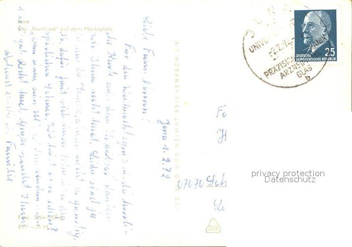 72172081 alte Postkarte Jena Der Hanfied auf dem Marktplatz postalisch gelaufen Erhaltung siehe scans KatCode: 11110016053000