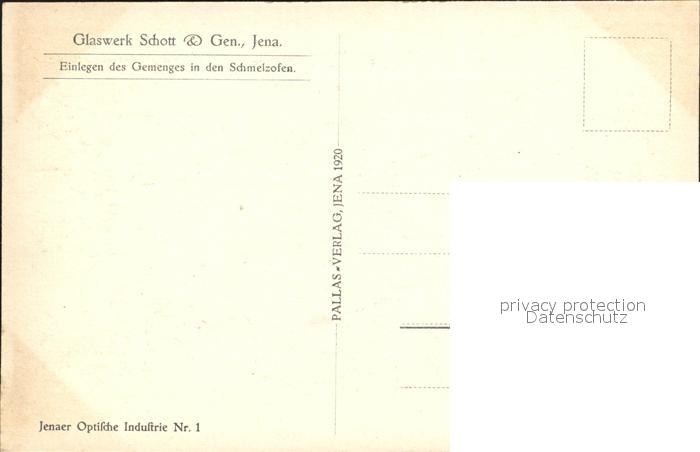 32029964 Jena Glaswerk Schott & Gen. Einlegen des Gemenges in den Schmelzofen postalisch nicht gelaufen Erhaltung siehe scans KatCode: 11110016053000