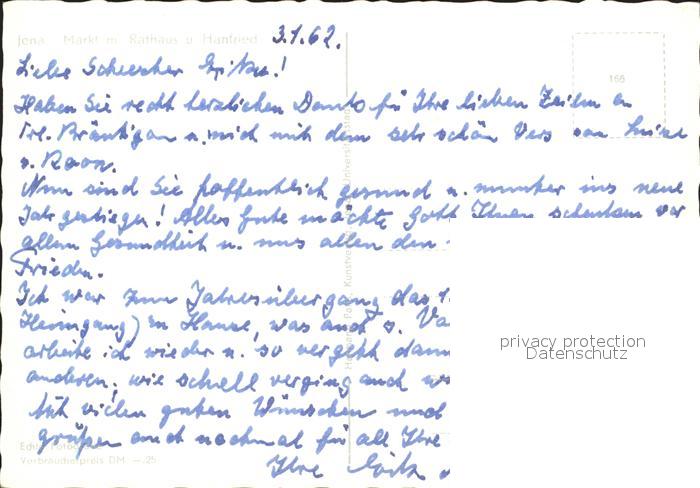 72080170 Jena Markt am Rathaus und Hanfried Bronzefigur postalisch nicht gelaufen Erhaltung siehe scans KatCode: 11110016053000