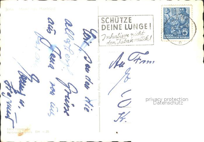 72359971 alte Postkarte Jena Markt mit Hanfried Denkmal postalisch gelaufen Erhaltung siehe scans KatCode: 11110016053000