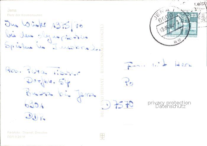 72414938 alte Postkarte Jena Platz der Kosmonauten postalisch gelaufen Erhaltung siehe scans KatCode: 11110016053000