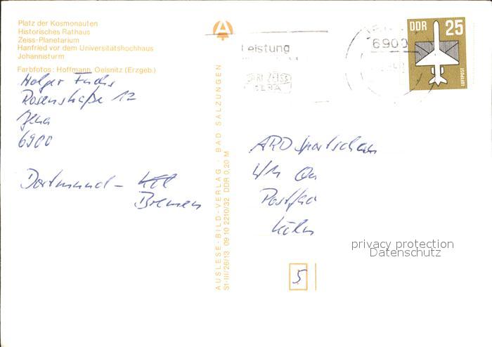 72286153 alte Postkarte Jena Platz der Kosmonauten Historisches Rathaus Johannisturm postalisch gelaufen Erhaltung siehe scans KatCode: 11110016053000