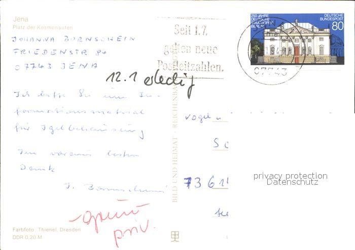 71974105 alte Postkarte Jena Platz der Kosmosnauten postalisch gelaufen Erhaltung siehe scans KatCode: 11110016053000