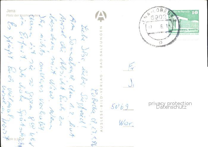 72304657 alte Postkarte Jena Platz Kosmonauten postalisch gelaufen Erhaltung siehe scans KatCode: 11110016053000