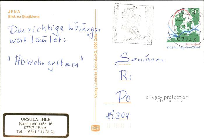 72396991 alte Postkarte Jena Stadtkirche postalisch gelaufen Erhaltung siehe scans KatCode: 11110016053000